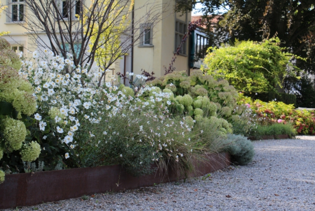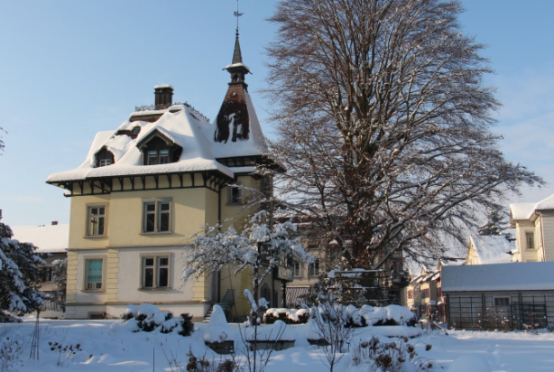 Angrenzend an das Grundstück der alten Fabrik, wo auch GINKGO beheimatet ist, steht eine alte Jugendstilvilla. Das Haus wurde 2012 total saniert, ebenso der Gartenpavillon. Der alte Buchsgarten wurde originalgetreu nachgebaut und die restliche Fläche erwachte im Sommer 2013 aus dem Dornröschenschlaf zu einem zeitgenössischen Garten mit grossen Blumenbeeten und Kiesflächen. Der Garten ist öffentlich und lädt zum Flanieren ein. Aber nicht nur.