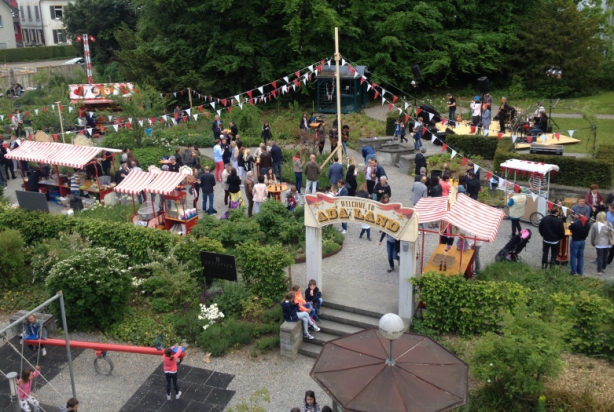 Der Garten kann auch gemietet werden, für private oder öffentliche Anlässe. Das Konzept wurde durch GINKGO so gestaltet, dass in der Mitte des Gartens für ca. 100 Personen eine Tafel gedeckt werden kann.