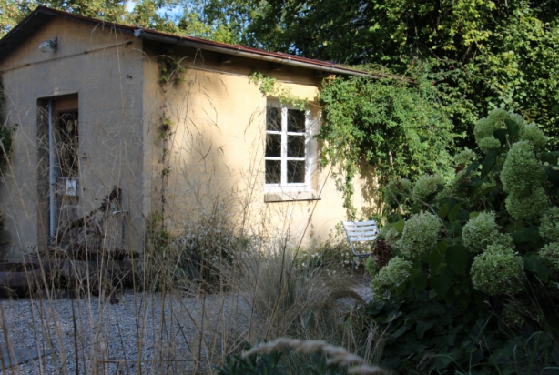 Das kleine Gärtnerhaus, das am äusseren Ende des Gartens liegt, ist das eigentliche «Schmucktrückli». Es kann gemietet werden für kleine Anlässe oder ein lauschiges Tête-à-tête mit einem feinen Dinner aus Nachbarins Küche, dem Bistro Cartonage.